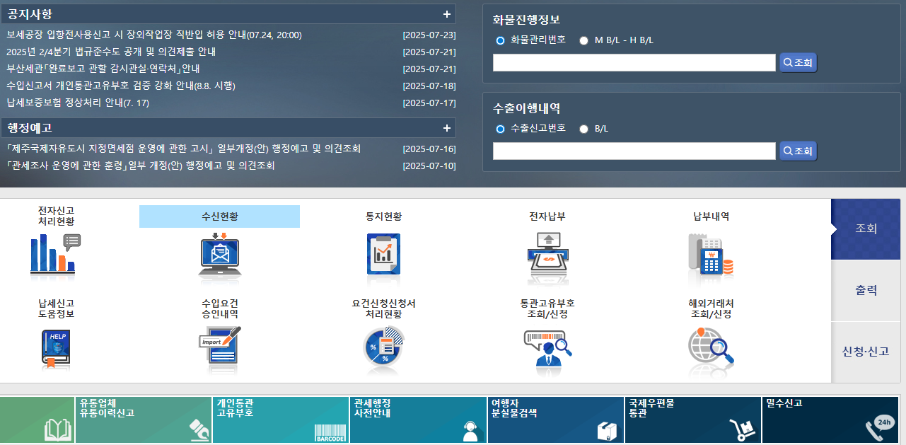 관세청 유니패스 사이트 이용 시 주의사항